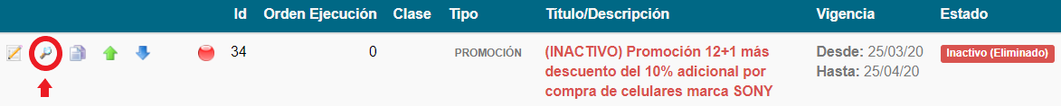 11. Visualizamos la acción creada y nuevamente de clic en el icono
