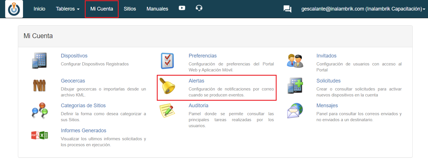 5. Ahora dirigirse a Mi Cuenta/Alertas para terminar de configurar sus alertas.