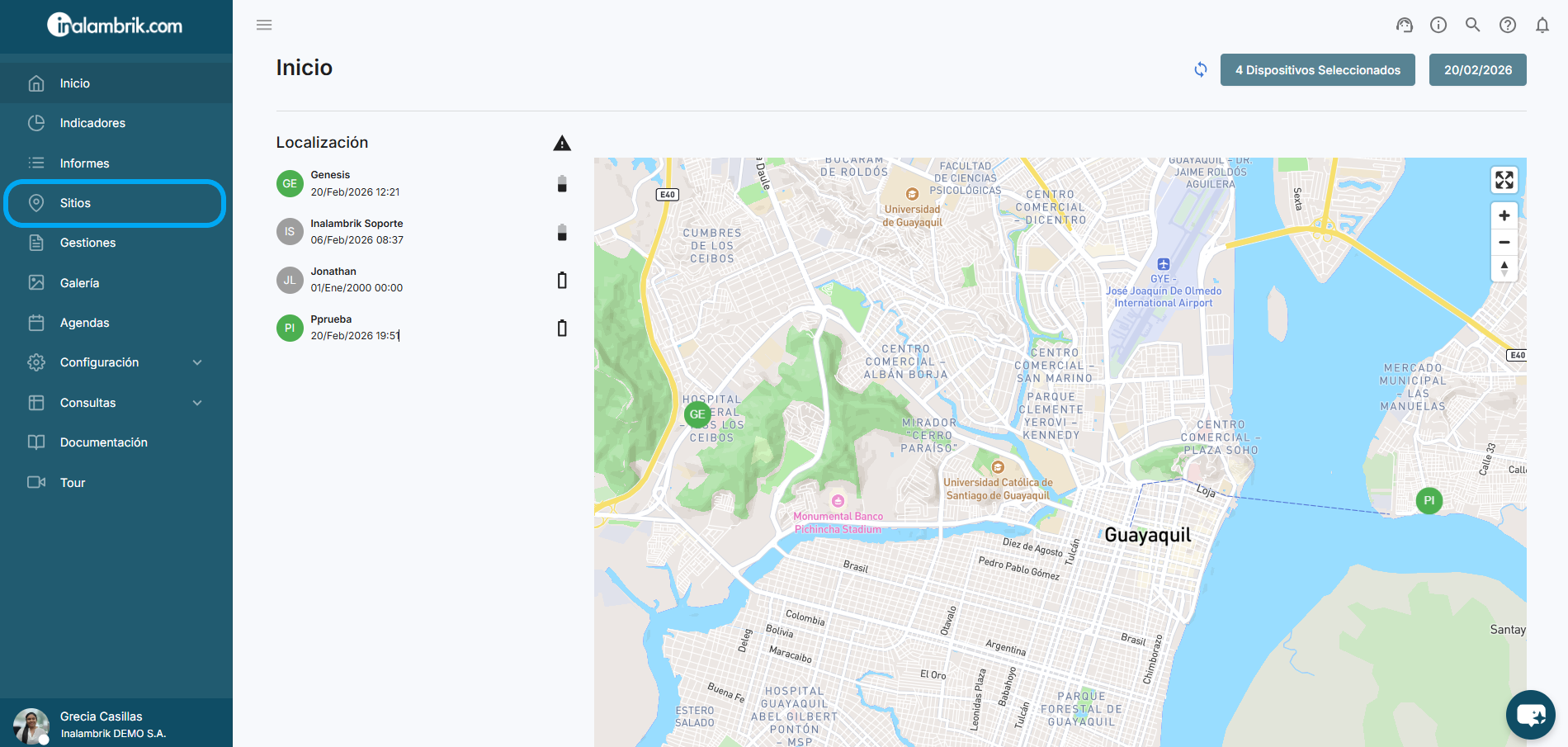 Los sitios son los lugares desde donde se realizan las gestiones. Es decir, desde donde se llenan los formularios utilizando la aplicación móvil. Por ejemplo: los sitios pueden ser locales de clientes, tiendas, puntos de entrega, etc.