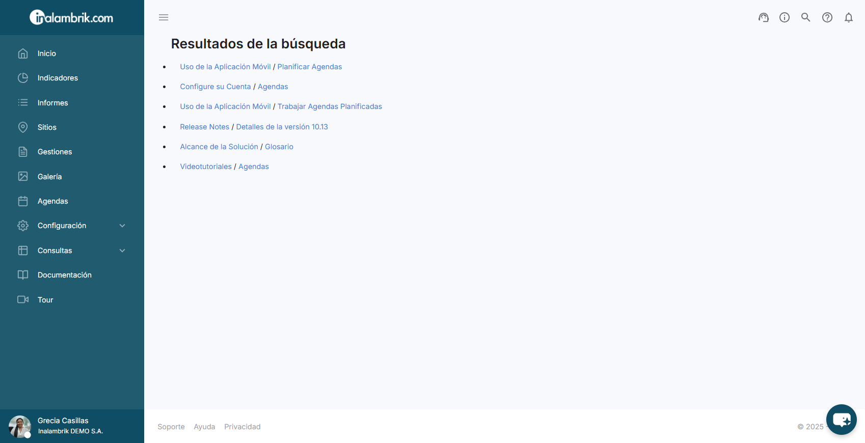 Se mostrarán como resultados de búsqueda los enlaces a la documentación correspondiente al tema consultado.