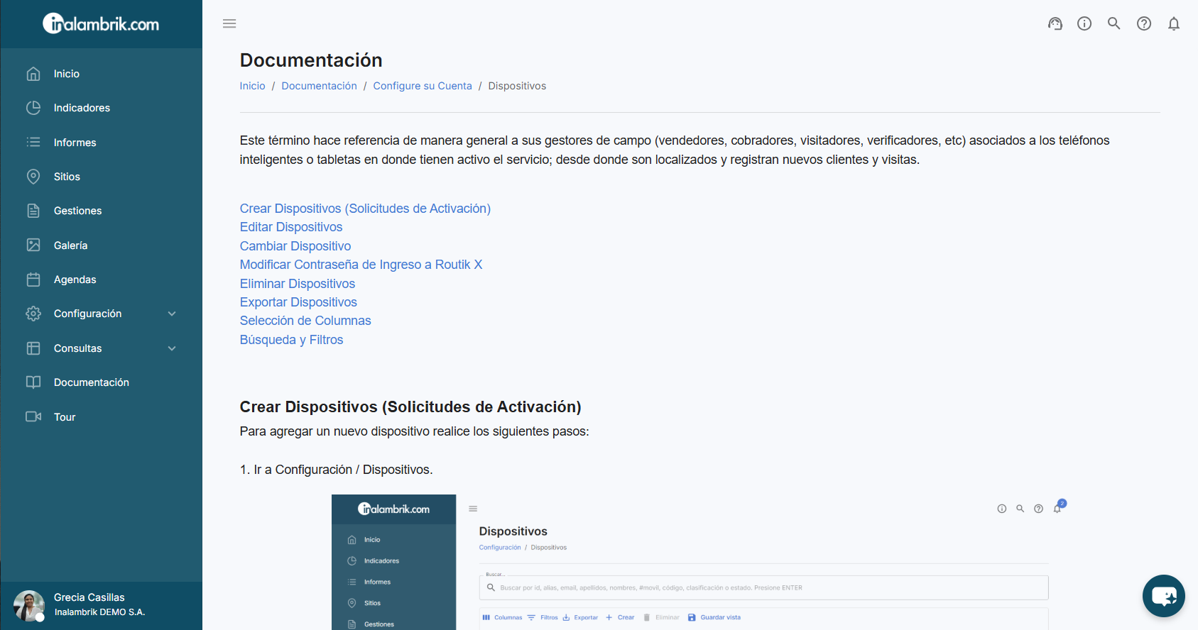 Se le redirigirá a la documentación correspondiente a "Dispositivos":