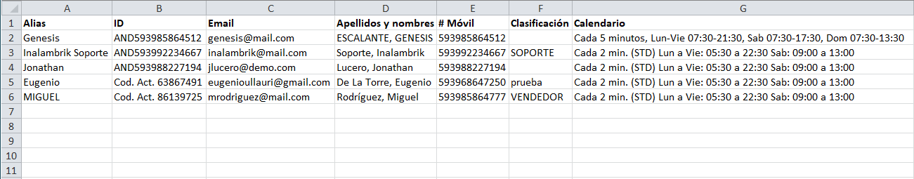 - Código Interno: Código interno usado en su sistema para identificar al usuario. (ej: código del vendedor, código del empleado, etc.)